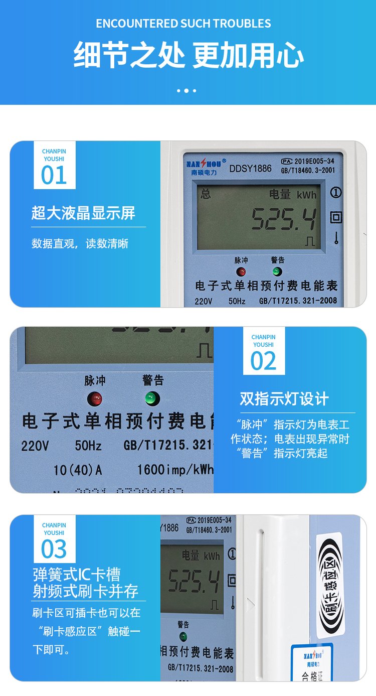 射频单三相电表 刷卡充值水电费 寿命长可靠性高